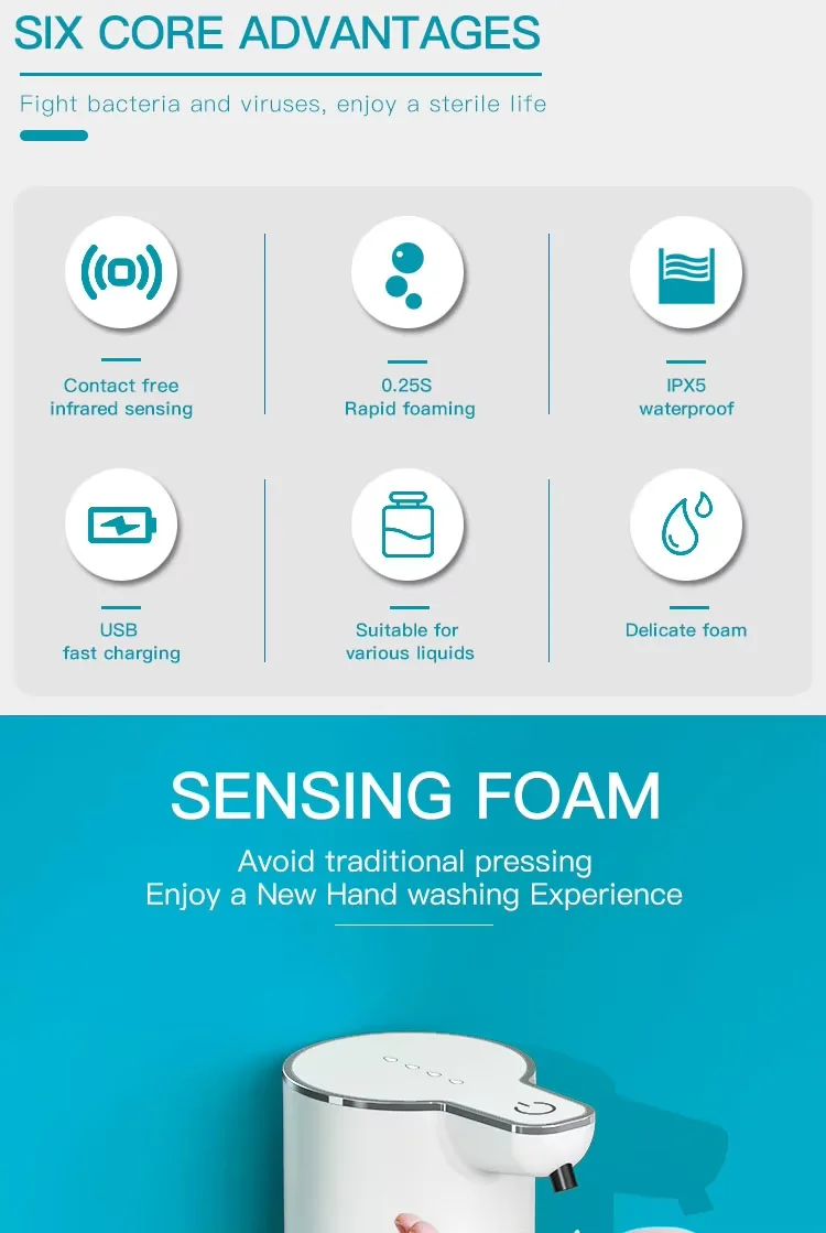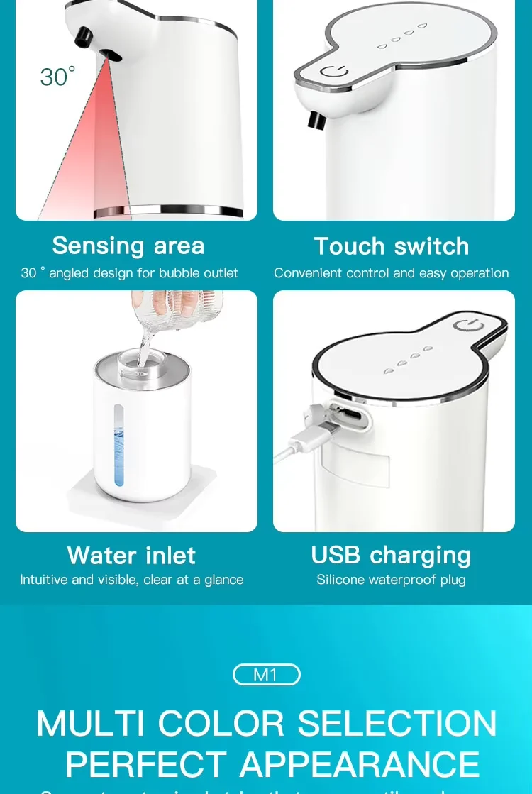 USB Rechargeable Smart ABS Foam Liquid Soap Dispenser Automatic Hand Washing Machine for Bathroom Kitchen Hotel Car