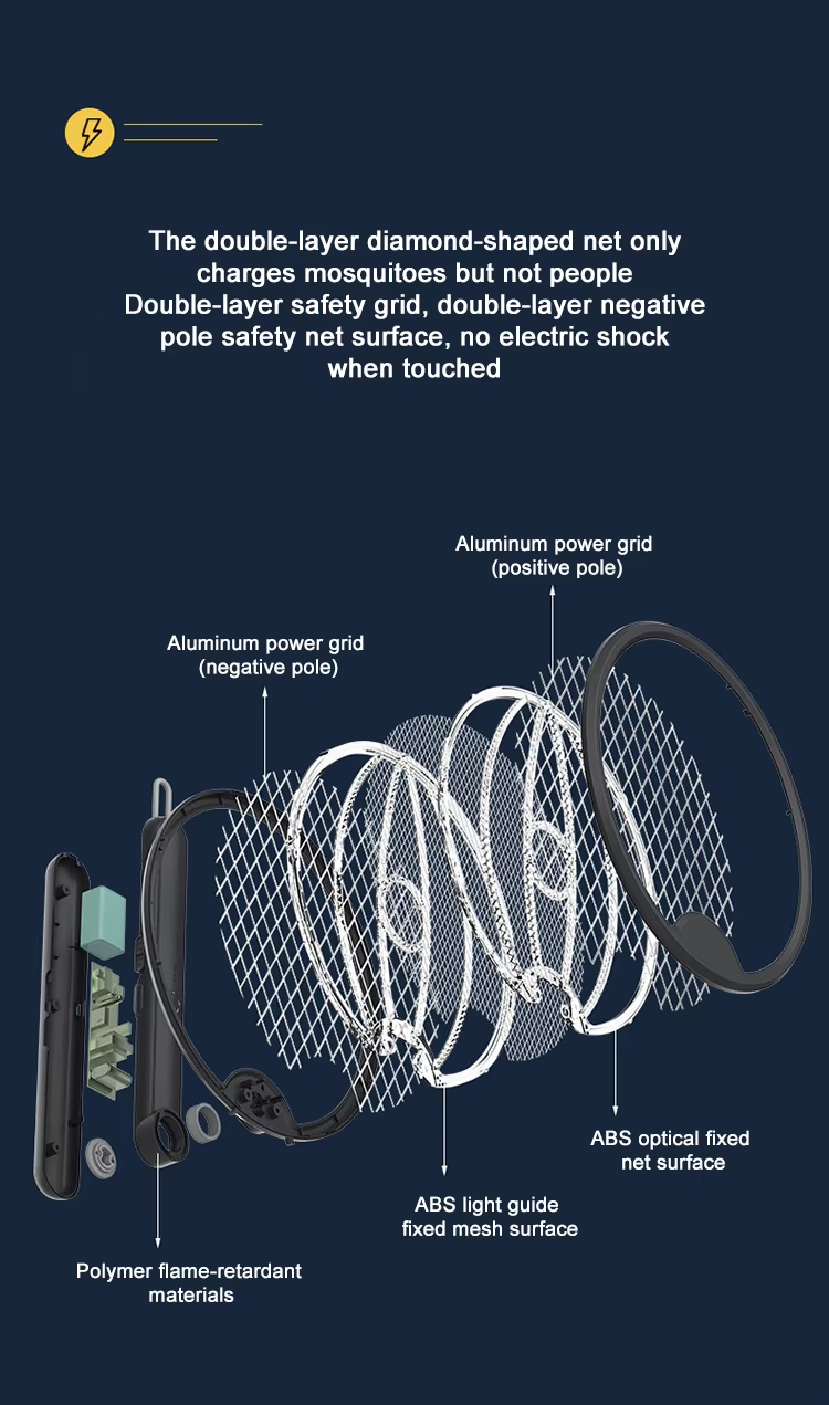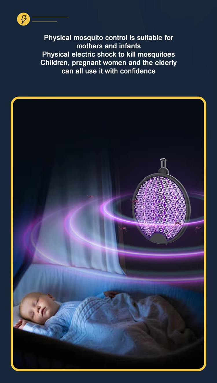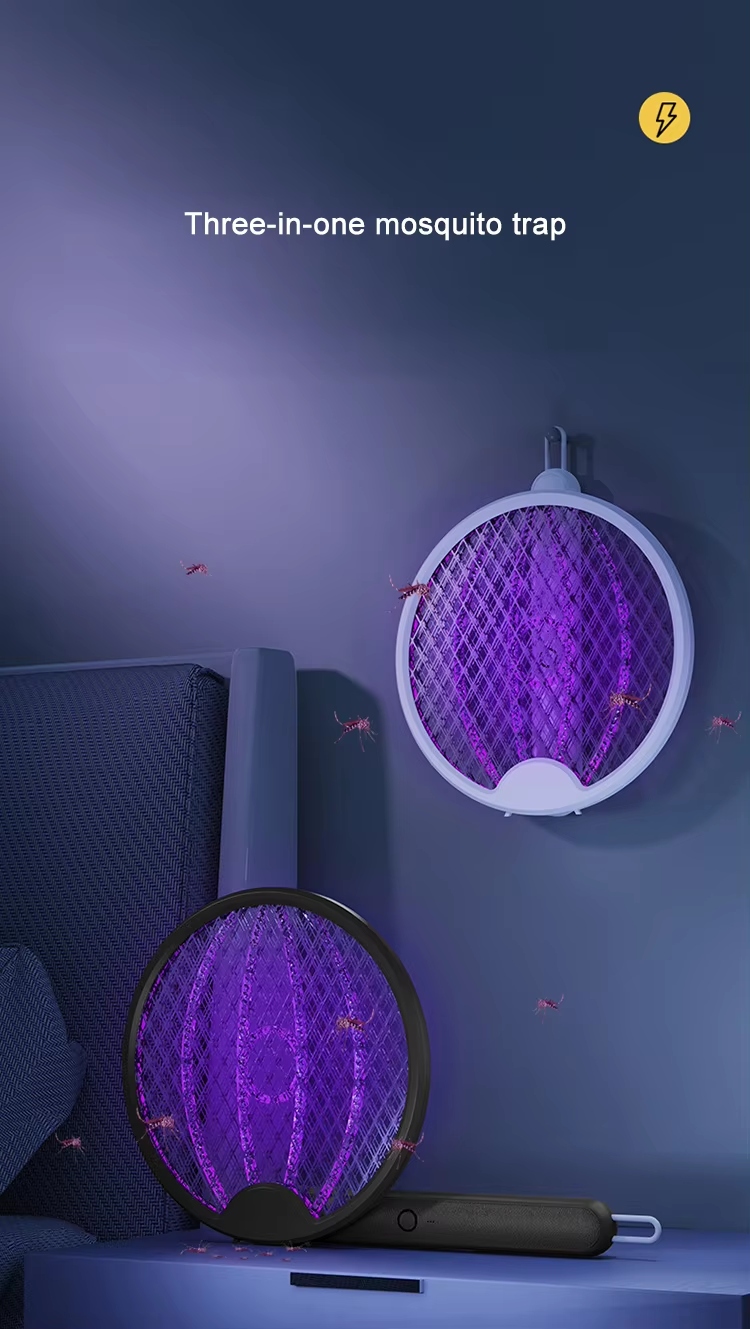 3-in-1 Wireless Charging Electric Mosquito Swatter Foldable Blue Light Electric Shock Fly Killer