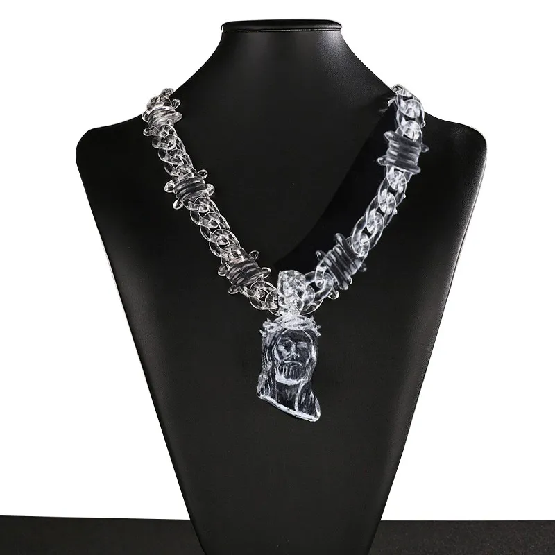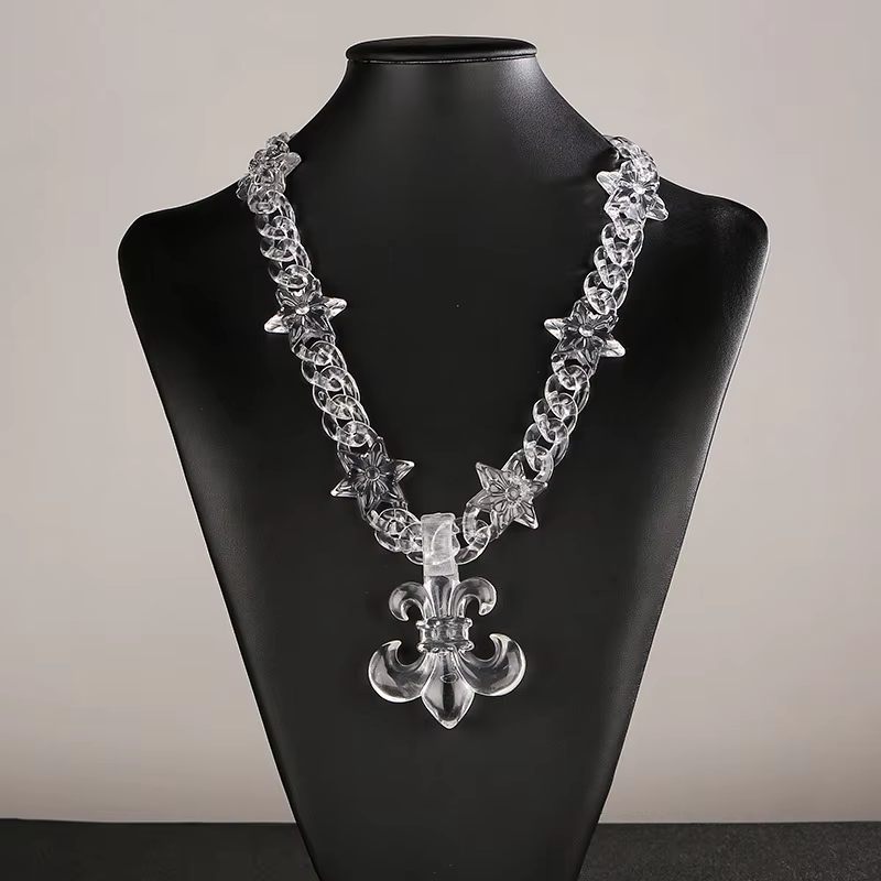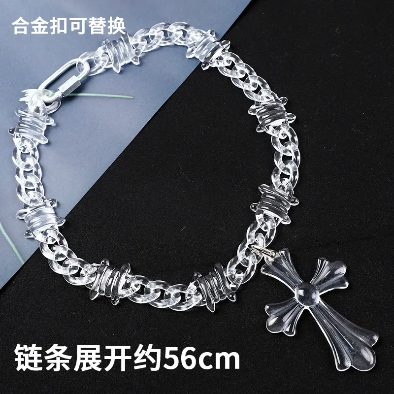 European American Transparent Resin Acrylic Pendant Cross Necklace Water Drop Design Link for Children's Wear Cross-Border