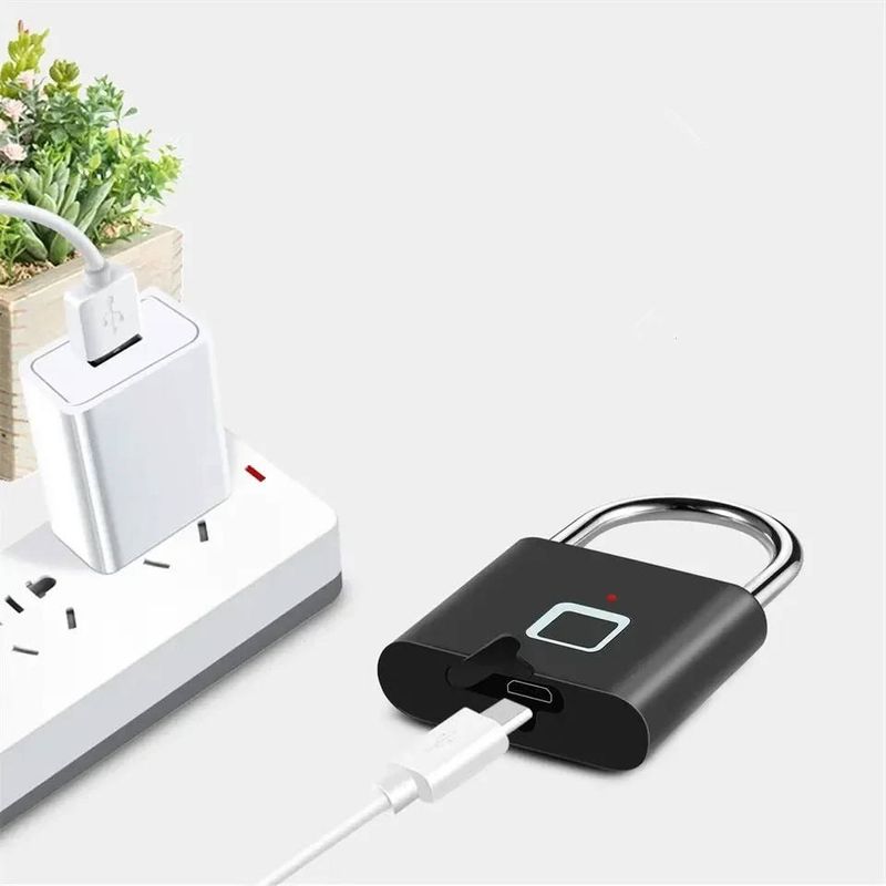 Smart Home Keyless USB Charging Fingerprint Lock Smart Padlock Waterproof Door Lock Portable Anti-Theft Padlock with Unlocking Function