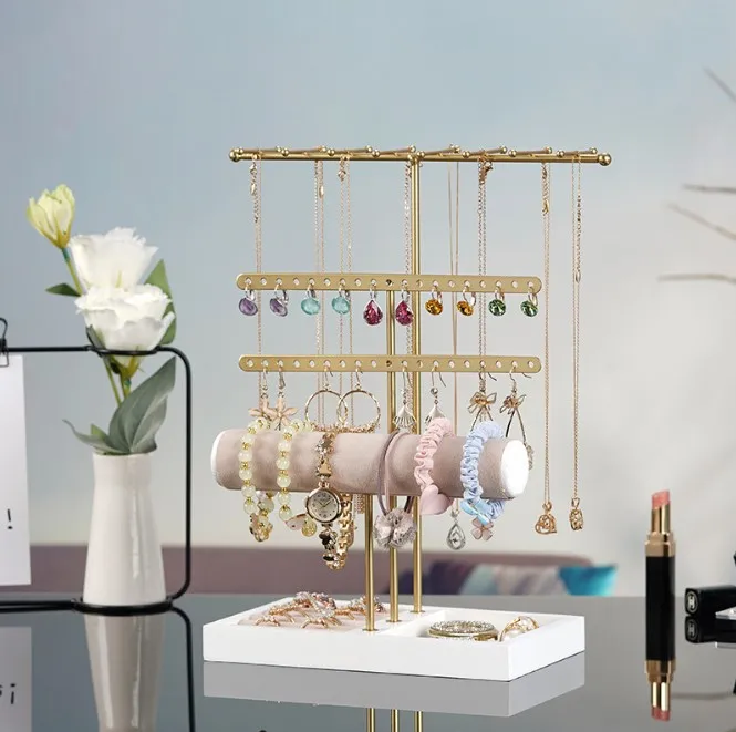 T-Shaped Jewelry Storage Rack Dressing Table Display Stand Necklace and Bracelet Metal Display Stand